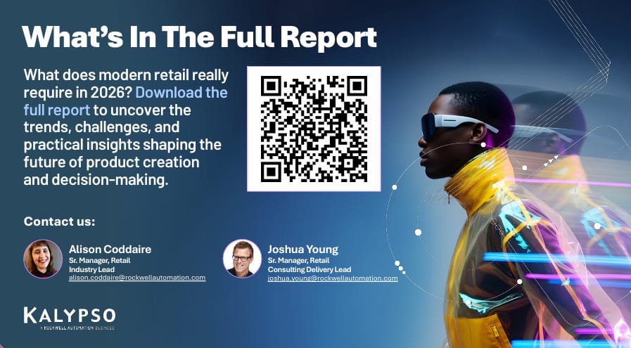 The final area Kalypso flagged as a growing focus is the connected loop from product creation all the way through to end of life: returns, repair, resale, and the data that flows back from those moments into future planning.