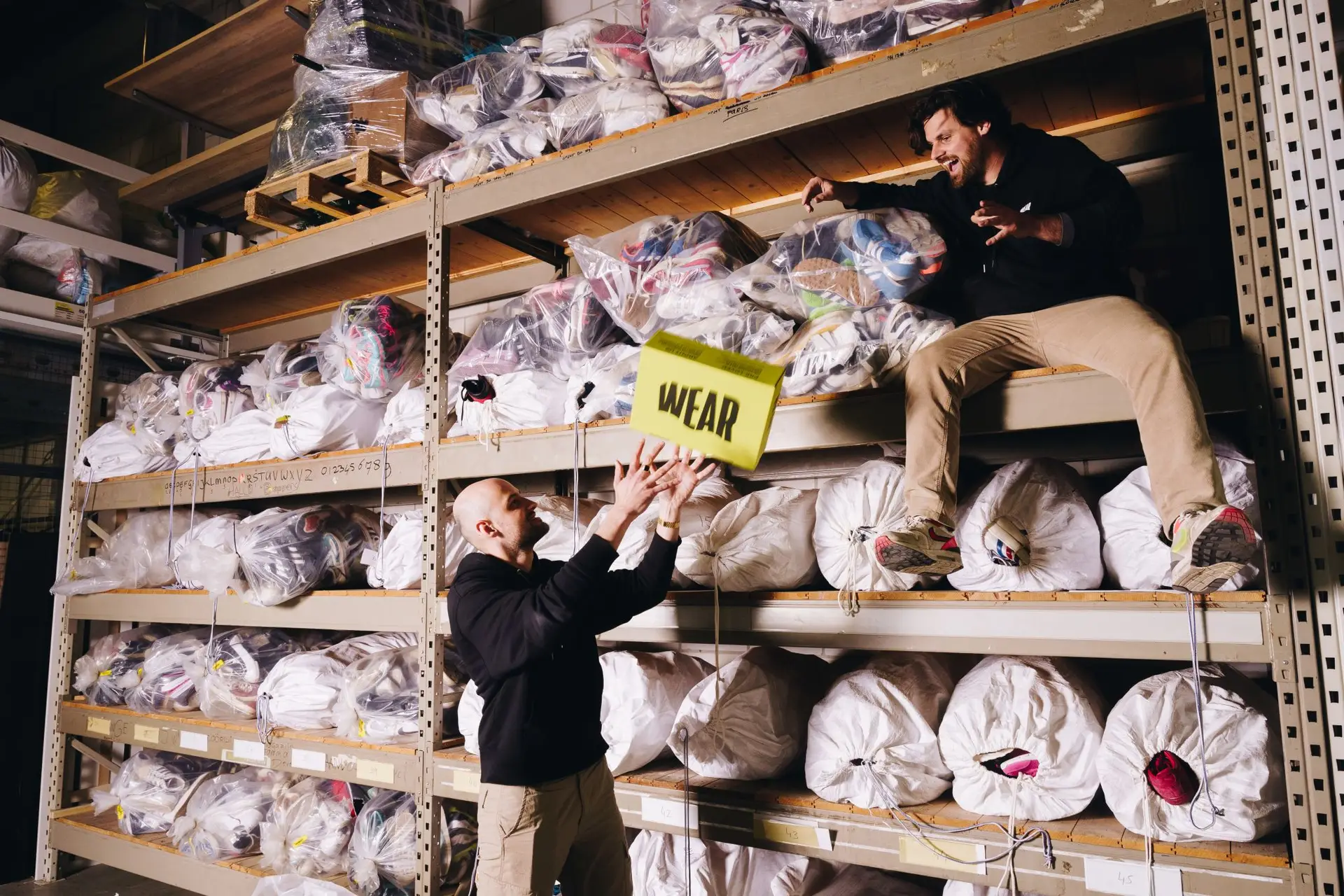 While visiting a textile-sorting facility that processes second-hand donations, Lorenzo stumbled upon piles of discarded sneakers.