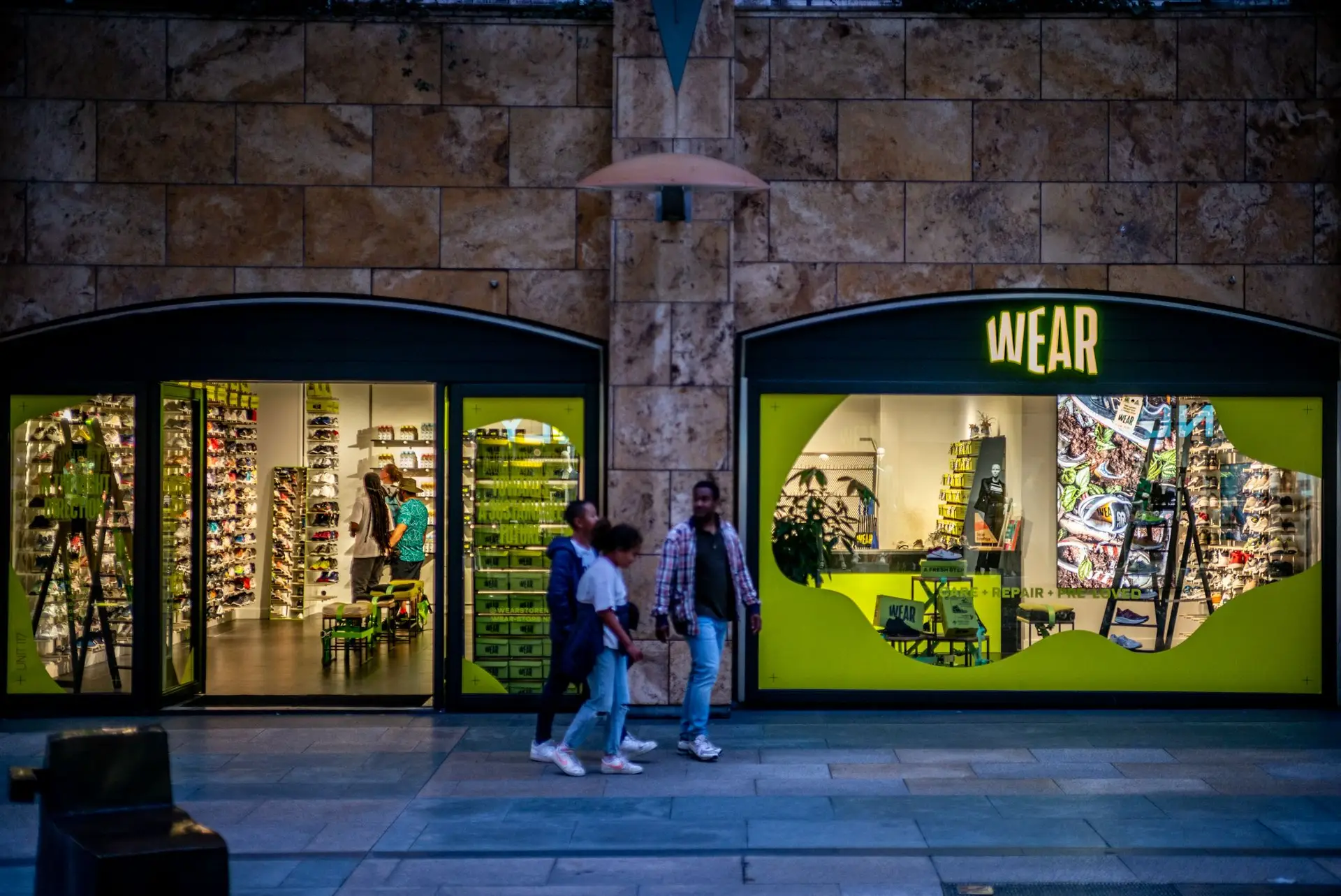 That idea catalysed a pivot from service-based cleaning to recommerce. In 2022, and with a €100,000 subsidy from the City of Rotterdam, WEAR opened a flagship store in the city’s busiest shopping district. Positioned beneath a major department store, it offered consumers the choice to buy refurbished sneakers, overstock pairs, or have their own cleaned.