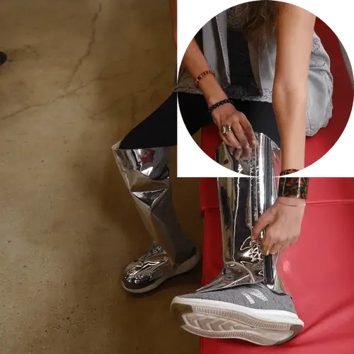 Then there was another remarkable project with the Hereditary Neuropathy Foundation, our undergraduate Footwear and Accessories program tackled the issue of style and functionality for braces worn by individuals with hereditary neuropathy. They designed stylish, easy-to-put-on braces that allow individuals to feel elegant, even when attending formal events like weddings.