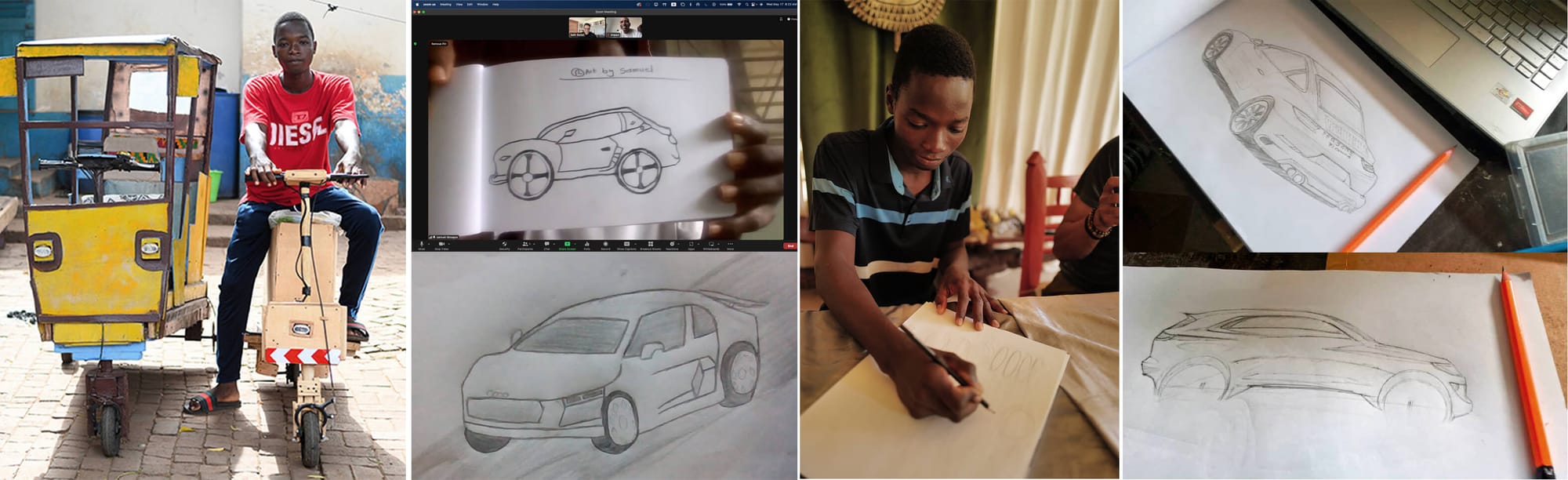 Absolutely - the mentorship component of Aliph is something we’re deeply committed to, and our biggest success to date has been with a young, incredibly gifted 19-year-old creator from Ghana called Samuel Aboagye. I first heard about Sam through my friend Greg Hatton, and I was immediately captivated by his story. Sam noticed mobility issues in his community near Accra and, with nothing more than discarded materials like sewing machine motors, car batteries, and plywood, he built a rickshaw and a scooter to help his neighbours get around. His ingenuity caught the attention of the BBC, and later, his work was exhibited at the prestigious Petersen Automotive Museum in Los Angeles, alongside some of the world’s top designers.