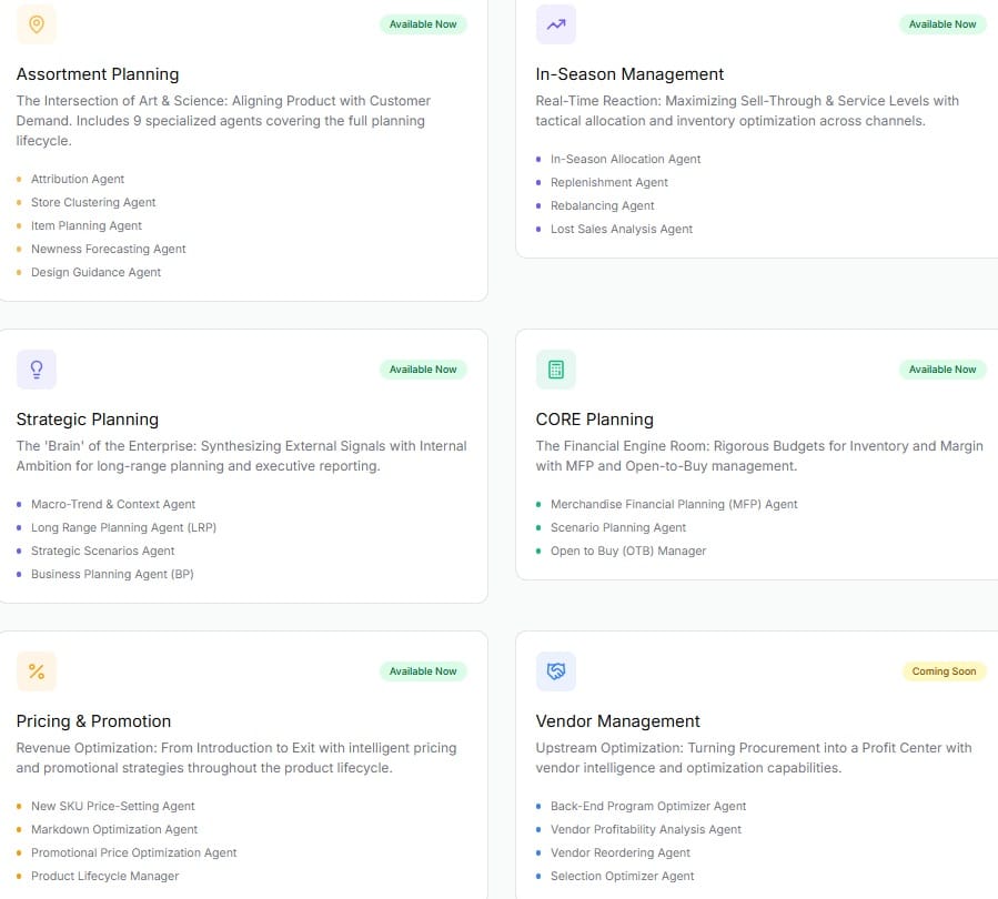 Rather than black-box forecasting, the platform delivers explainable recommendations across forecasting, assortments, inventory, and financial planning, embedded directly into existing workflows.
